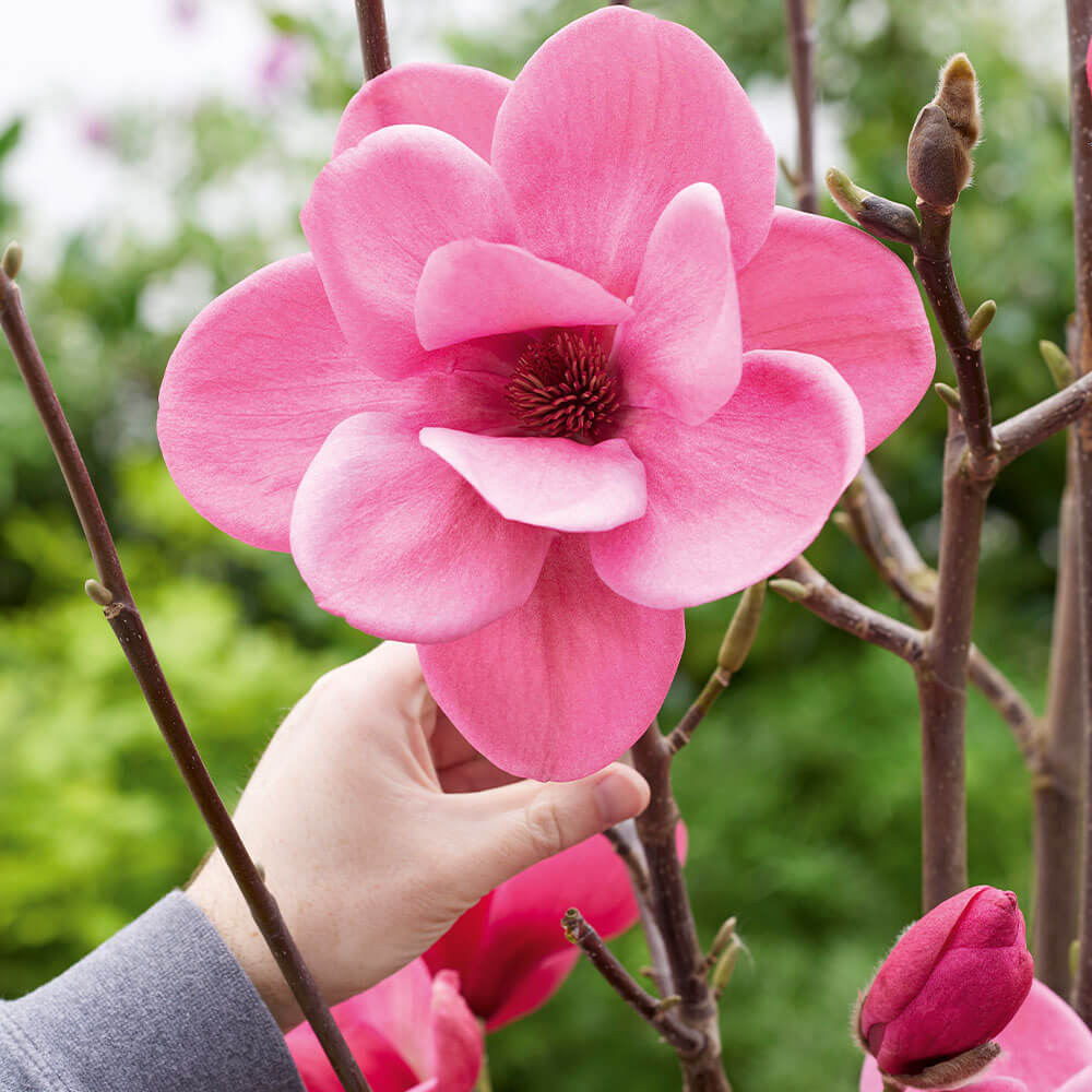 Vsebina paketa:1 kos Ta izjemna sorta magnolije je zmagovalka z velikimi, poldvojnimi cvetovi v intenzivnih odtenkih lubenično rožnate barve. Barva cvetov je v posebnem kontrastu z zeleno barvo svežega spomladanskega listja, zato je prava paša za oči. Najlepše je od aprila dalje, njegovo dolgotrajno cvetenje pa je eleganten barvni pridih na vrtu. Zaradi ravne, harmonično razvejane rasti je odlična vzorčna rastlina za vrtove pred hišo in mejice. Ta sorta, ki izvira iz ZDA, ni le bogato cvetoča, temveč tudi izjemno odporna.