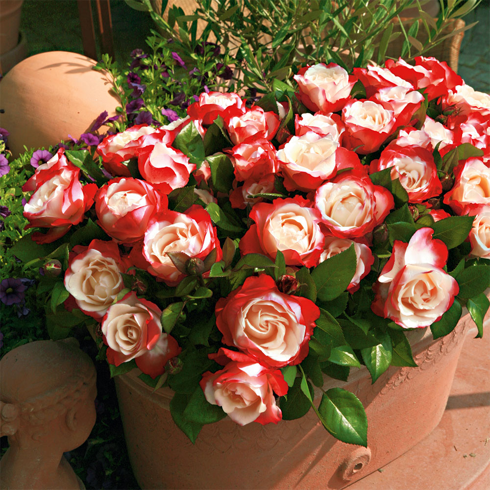 Vsebina paketa:1 kos A krémfehér és cseresznyepiros színek kombinációja valamint az illata ámulatba ejtenek minden rózsakedvelőt. Egész nyáron folyamatosan virágzik.