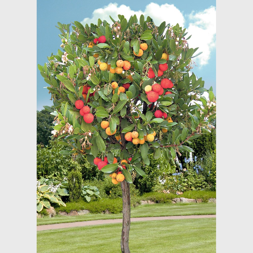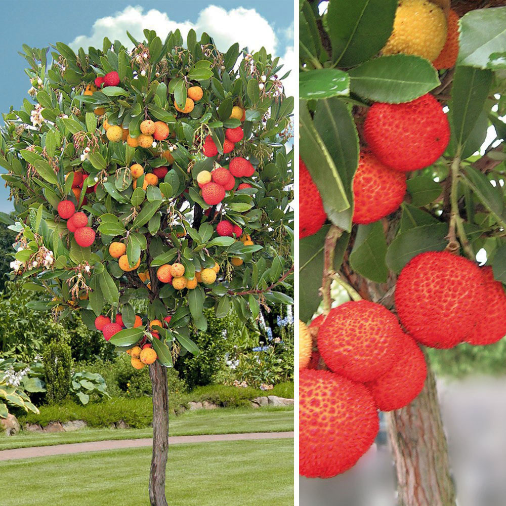 Vsebina paketa:1 kos Sadje kot jagode na drevesu! Od 2 do 3 metre dolge užitne plodove je mogoče predelati v marmelado ali liker. Čudoviti zimzeleni listi navdušujejo vse leto. Njegovo graciozno belo socvetje in plodovi so prav tako vreden okras. Plodovi med zorenjem postanejo rumeni, oranžni in nato rdeči kot ognjemet. Zanimivo je, da lahko zorenje traja več mesecev, zato lahko na istem drevesu hkrati vidite cvetove in plodove.