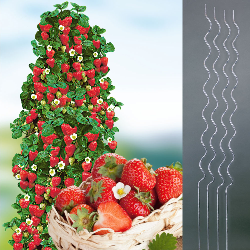 Vsebina paketa:10 kos Akcijska ponudba: 6 Hummi plezalnih jagod + 4 plezalne spirale v enem paketu! Od začetka junija do prvih zmrzal plodovi obrodijo neprekinjeno in v obilju. Rastlina razvija dolge poganjke, ki prav tako cvetijo in obrodijo. Poganjke je treba privezati na kol, pri gojenju v valjih pa jih pustimo, da visijo. Za ustrezno oblikovanje poganjkov so potrebna bogata hranila in zadostna oskrba z vodo. Močne sadike v pakiranjih.