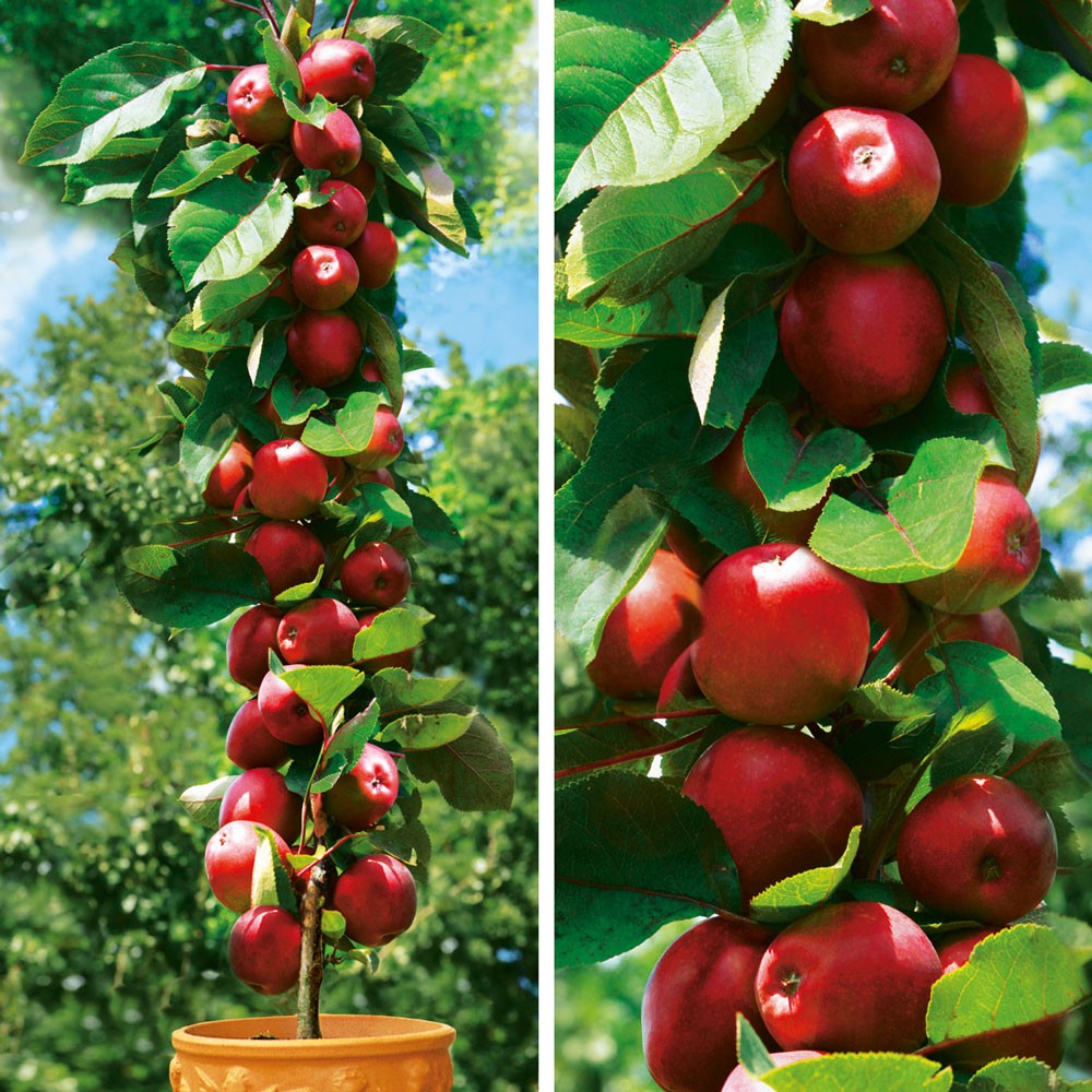 Svetlo rdeče barve sadje je hrustljavo, sočno in izjemno okusno. Zori od začetka septembra. Je rodovitno in se dobro shranjuje. Genetsko je ozko, stebrasto drevo, zato ga je mogoče saditi tudi v majhnih vrtovih. Je odporna sorta, ki jo je mogoče gojiti tudi brez škropiva. Spomladi jo krasijo velike bele cvetove. Dobro se oprašuje z drugimi sortami jabolk. Pošiljamo močne rastline v 18-centimetrskih lončkih.