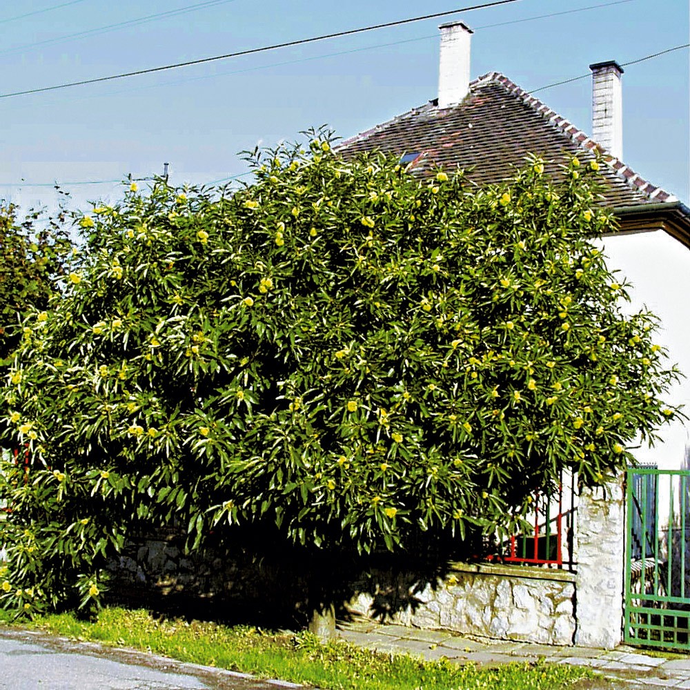 Vsebina paketa:1 kos Plodovi so zelo veliki, z visokimi donosi. Hibrid, ki je nastal z križanjem, odporen proti boleznim in skorji. Obrodi že v 2. in 3. letu! Zgodnja sorta, obira se že v začetku septembra. Tanek lupin je enostaven za luščenje, plodovi so dobro shranljivi. V moderni kuhinji se uporablja na različne načine, iz njega lahko pripravimo odlične sladice. Samoplodno