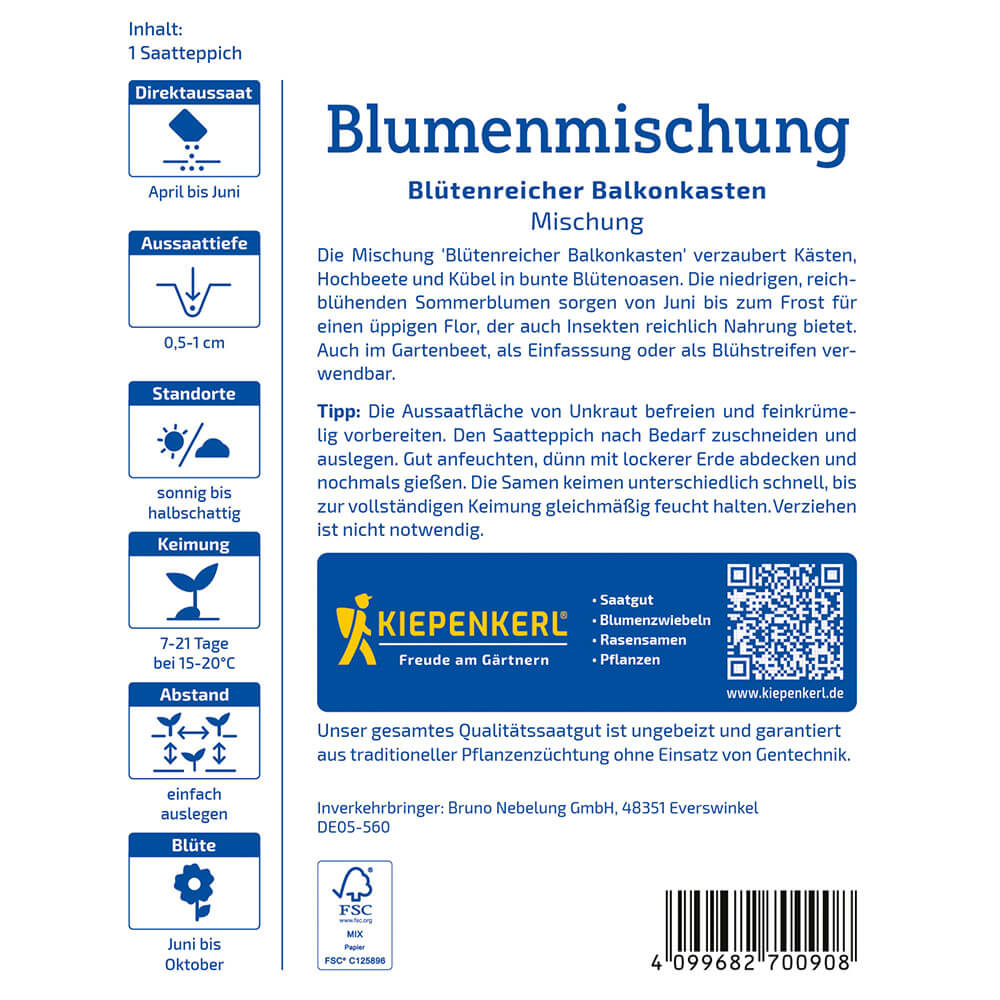 Vsebina paketa:1 kos Mešanica. Zabojčke, dvignjene gredice in posode spremeni v čarobno oazo cvetja. Vir hrane za številne žuželke. Cveti od junija do zmrzali.
