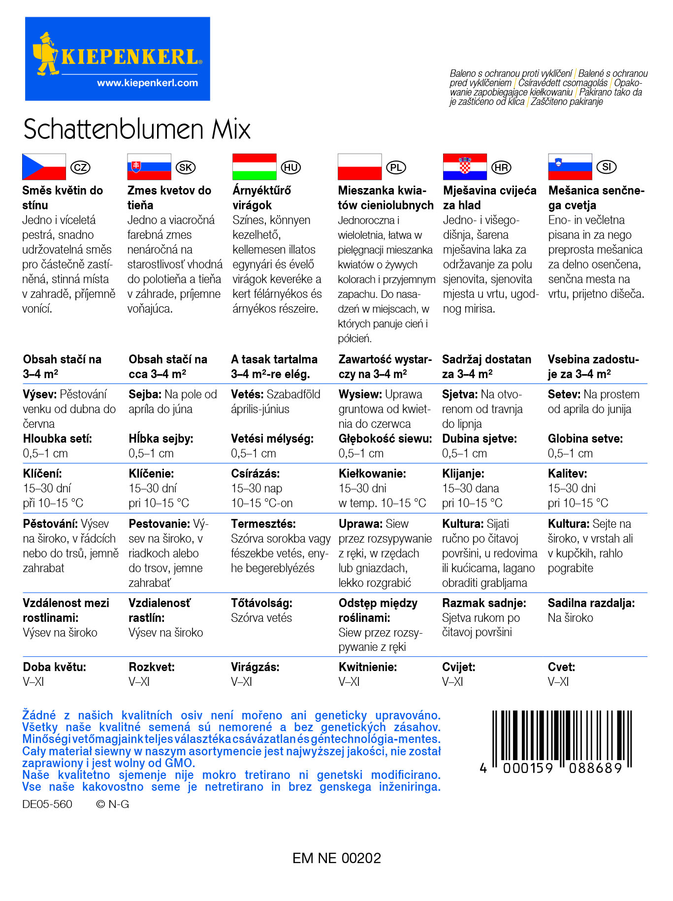 Vsebina paketa:1 kos Barvita, enostavna za nego, prijetno dišeča mešanica enoletnih in trajnih cvetlic za polsenčne in senčne dele vrta. (Vsebina vrečke zadostuje za približno 3–4 m2.)