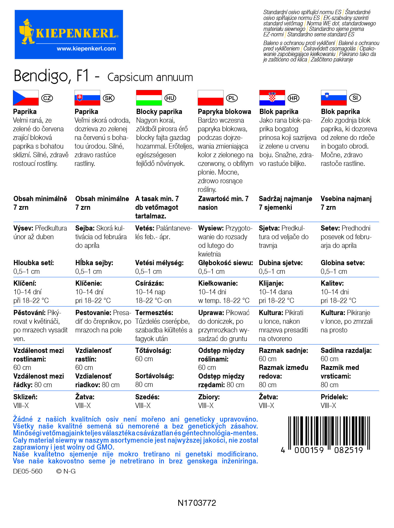Vsebina paketa:1 kos Zelo zgodnja paprika. Med zorenjem spremeni barvo iz temno zelene v rdečo. (7 kosov) Odporna na bolezni.