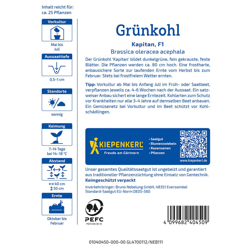 Vsebina paketa:1 kos Zelena ohrovt. Zimsko zelenjava z nežnim okusom. Temno zelene, rahlo kodraste, čvrste liste. Odporna na zmrzal in enostavna za gojenje. Lahko se pobira od jeseni do februarja.