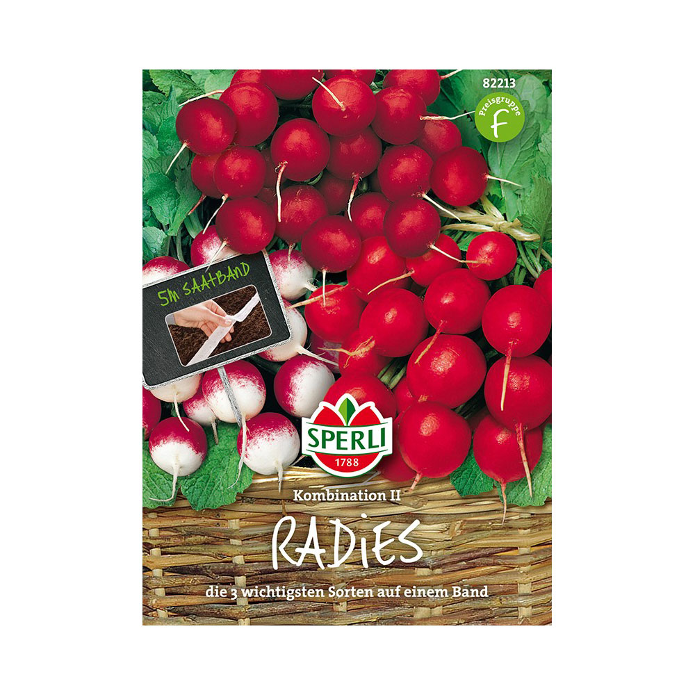 Vsebina paketa:1 kos Traka s semeni redkve vsebuje 3 različne vrste semen redkve: velika maslena redkev, parat in rdeča in bela okrogla redkev. Dolžina traku s semeni: 5 m.
