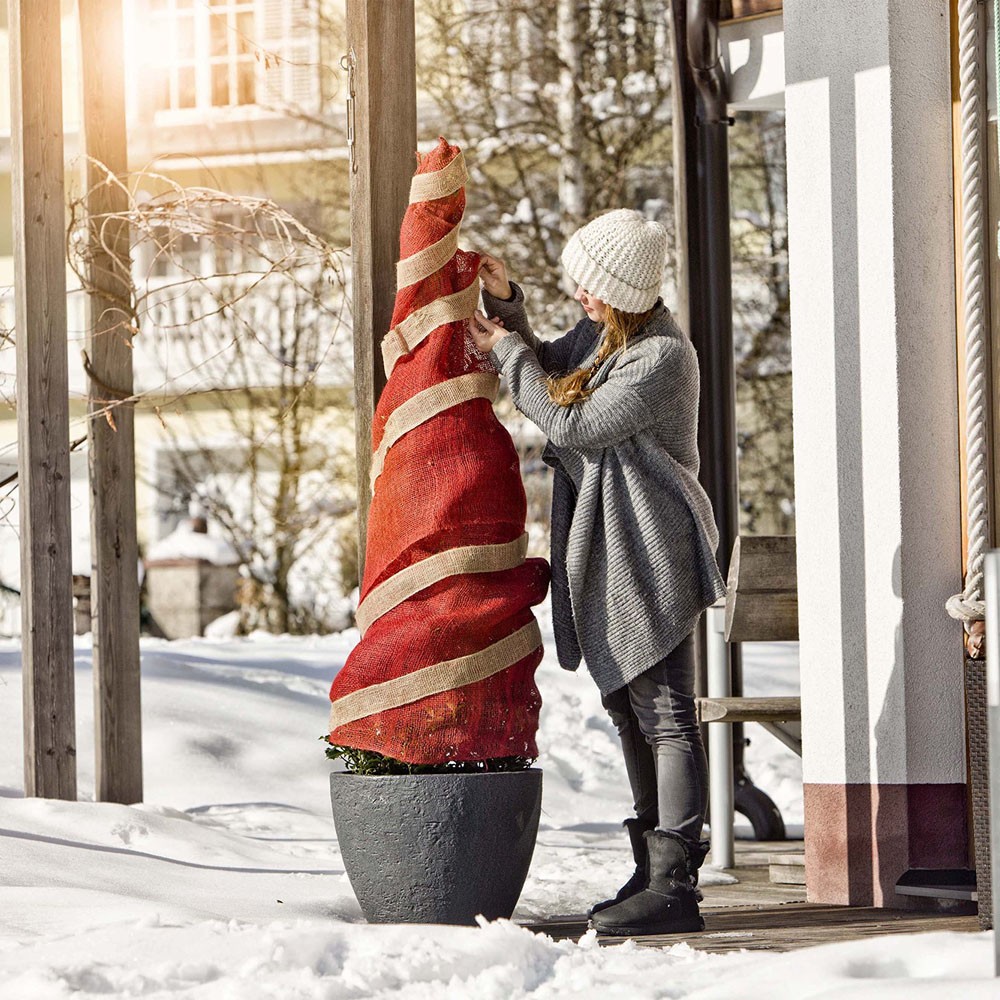 Vsebina paketa:1 kos Ta tkanina iz jute iz naravnih materialov ščiti tudi najtanjše veje in korenine pred mrazom, vetrom in zimskim vremenom. Poleg številnih dekorativnih uporab na vrtu ali celo na balkonu lahko spomladi iz mladih poganjkov vidite vitalne rastline. Velikost: 1x5 m.