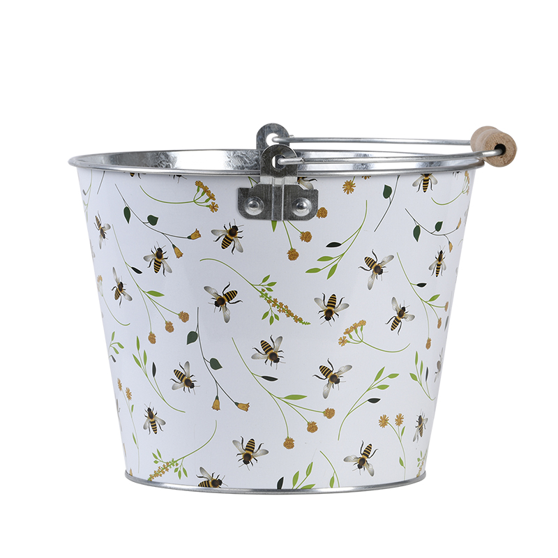 Vsebina paketa:1 kos 5litrsko kovinsko vedro z lesenim ročajem s čebeljim vzorcem. Koristen pripomoček za vrtnarjenje, tako za prenašanje vode kot za sajenje. Zaradi posebne oblike bo na vašem vrtu videti elegantno. Dimenzije: višina: 19,5 cm, širina: 27 cm, globina: 25,7 cm Teža: 0,36 kg