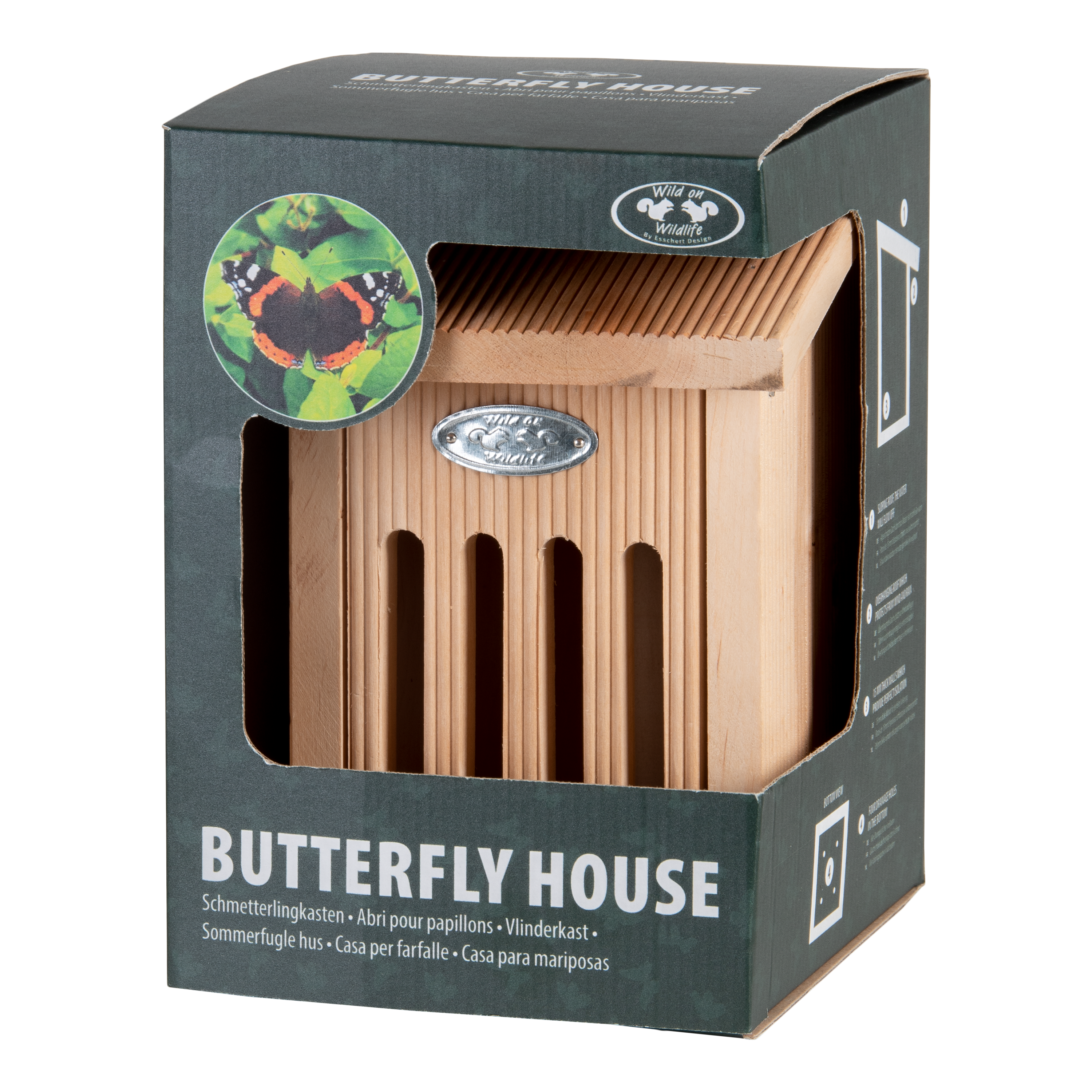 Vsebina paketa:1 kos Metuljeva hišica v darilni škatli. V vročih in sončnih poletnih dneh lahko opazite veliko metuljev. V hladnih in vlažnih dneh pa se skrivajo. Ta hišica je idealno skrivališče za metulje, v katerem najdejo zavetje v slabih vremenskih razmerah. Pozimi lahko hišico uporabljajo tudi za hibernacijo. Metulji se v hiški radi oprimejo majhnih vejic, zato jih ne pozabite namestiti v hiško. Nagnjena streha varuje hišico pred dežjem, sprednji del pa je mogoče odpreti za lažje čiščenje. Zaradi luknje na zadnji strani je namestitev enostavna. Žebelj za namestitev ni priložen. Dimenzije: višina: 22 cm, širina: 15,5 cm, dolžina: 15,9 cm Teža: 0,91 kg Translated with DeepL.com (free version)