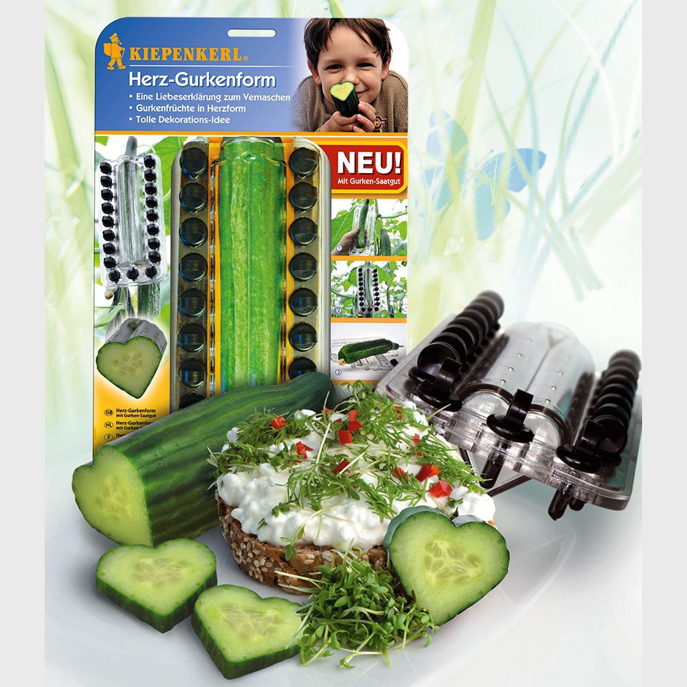 Eredeti ötlet. Szív alakú kígyóuborka formázó, mely a műanyag formázót és a magot is tartalmazza.