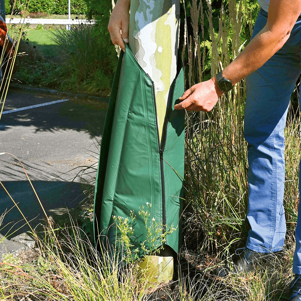 A vízadagoló zsák lassú, egyenletes, hosszútávú vízellátást biztosít a fáknak. Csepegtető mechanizmusának köszönhetően ideális a fák öntözéséhez meleg és száraz nyarakon. Bármilyen nagyságú és fajtájú fához használható. Teljes űrtartalma 75 liter.